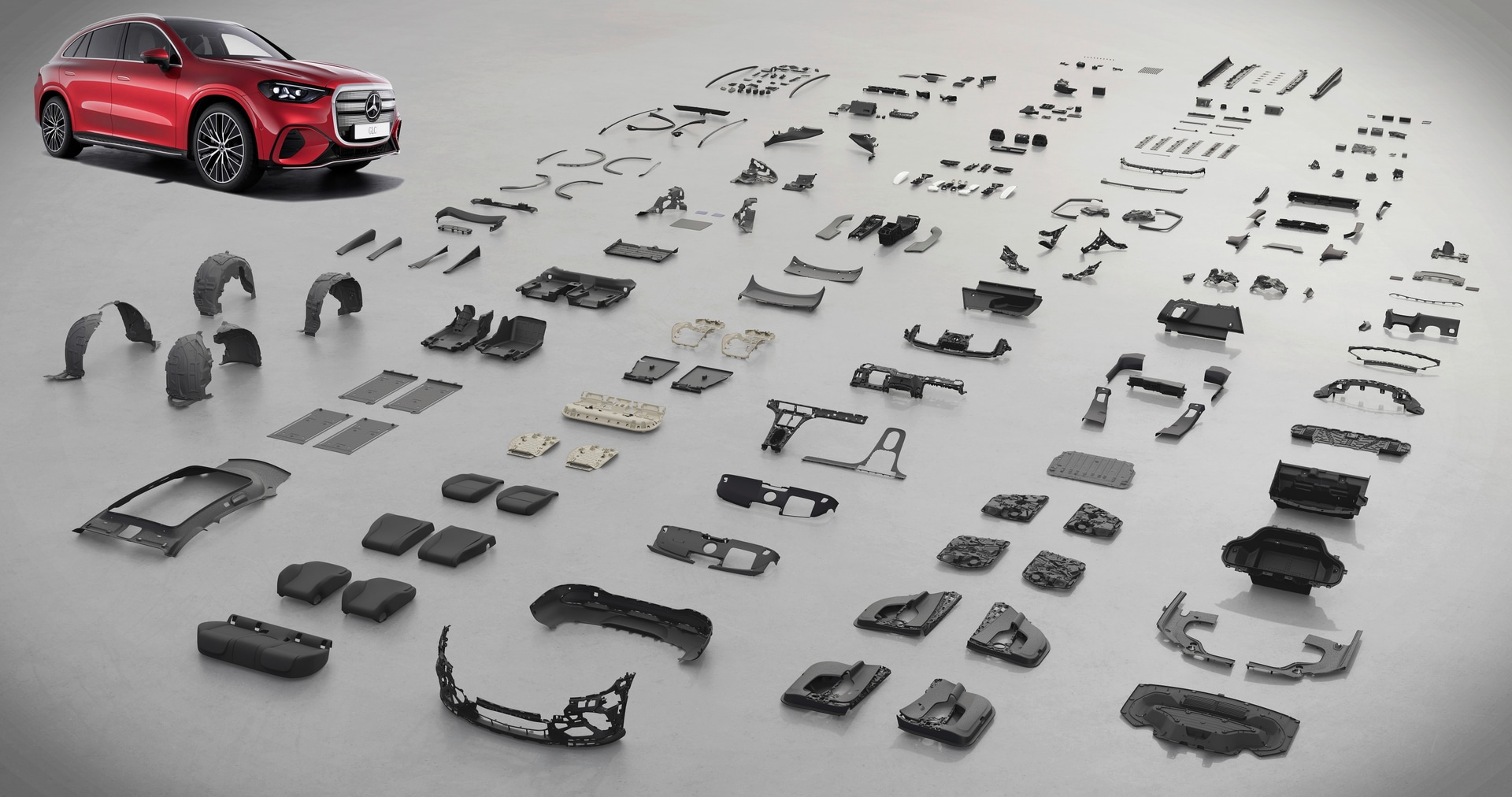Spoločne s dodávateľmi zaviedla spoločnosť cielené opatrenia na zníženie CO₂ už vo fáze výroby. V prípade elektrického modelu GLC 400 4MATIC sa podarilo znížiť emisie vo výrobe celkovo o 23 percent. Tieto úspechy odrážajú holistický prístup, ktorý sa zameriava na materiály a komponenty s najvyššou uhlíkovou náročnosťou: akumulátorové články, hliník, oceľ a termoplasty.