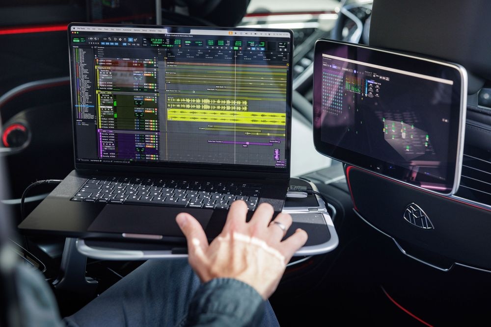 Spolupráca teraz ide ešte o krok ďalej: koncepciou „Crafted in a Mercedes-Benz“ (Vytvorené vo vozidle Mercedes-Benz) predstavuje Mercedes-Benz skutočné „mobilné kreatívne centrum“. Zadná lavica vozidla Mercedes-Maybach sa premieňa na plne vybavené zvukové štúdio Dolby Atmos. Umelci a producenti si môžu pripojiť svoje notebooky a okamžite začať s mixovaním, počúvaním a dolaďovaním – pohodlne a mobilne. Systém umožňuje individuálne ovládanie systému reproduktorov vozidla, a tým aj precízne zvukové inžinierstvo na cestách. Mercedes-Benz momentálne testuje sériovú verziu tejto koncepcie.